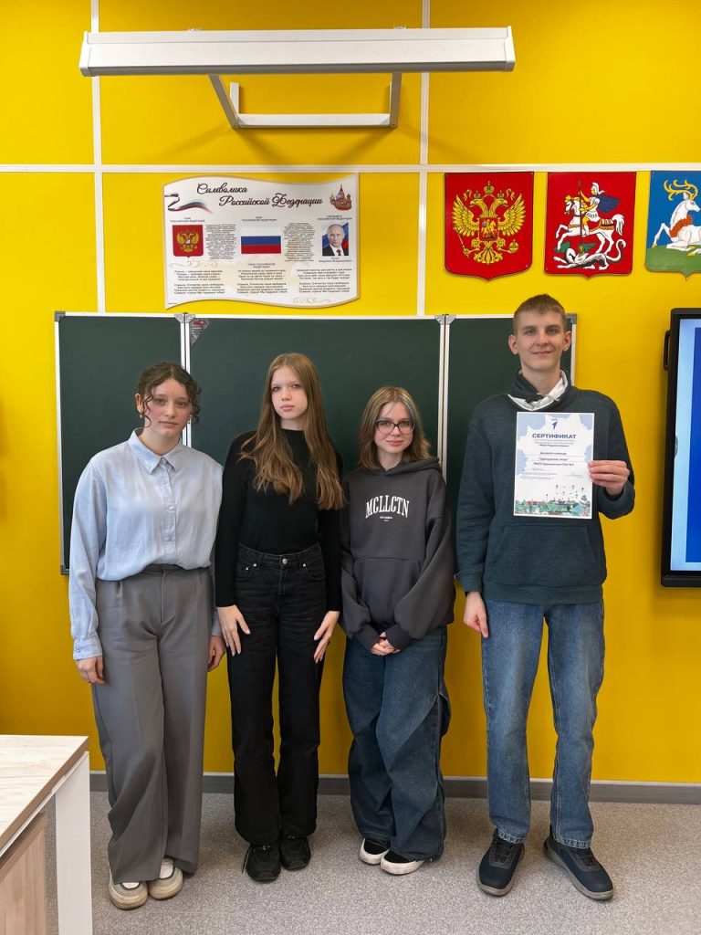 В чемпионате приняли участие ребята из МБОУ Одинцовская СОШ № 1: С. Матвей К. Алина В .Владислава Т. Алёна